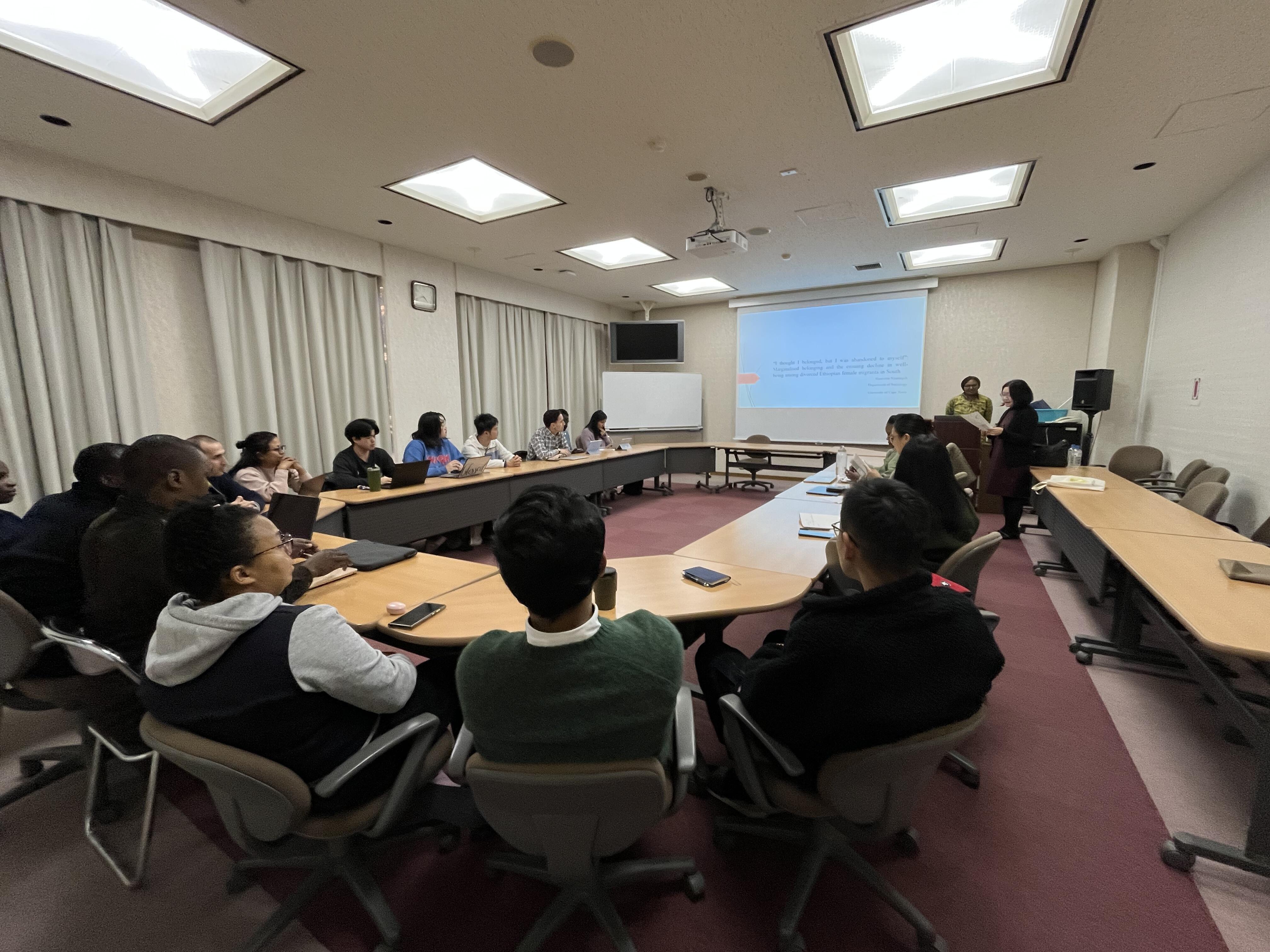 Patrick (from Rwanda), a former exchange student at TUFS who enrolled this year in the Master's program at Graduate School for International Development and Cooperation (IDEC) at Hiroshima University, also participated in the seminar.